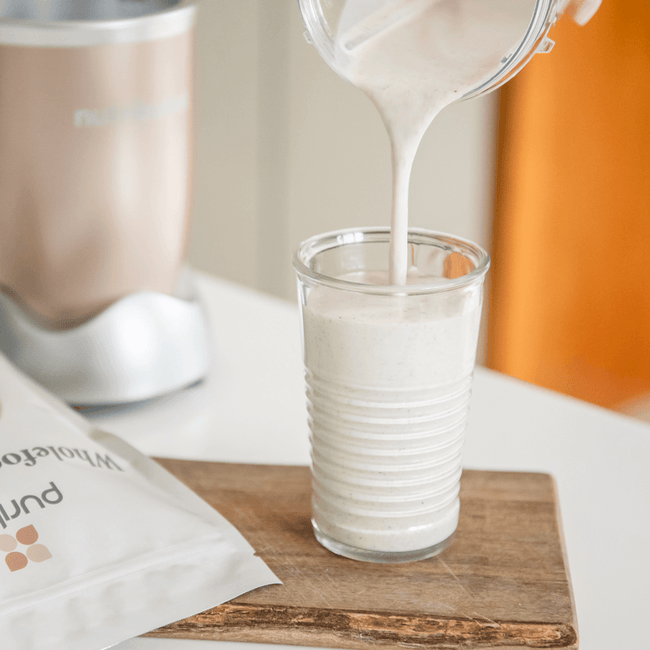 Blend with 200-250ml of your favourite milk (dairy or plant) for a creamy shake. Perfect for busy mornings or after the gym.